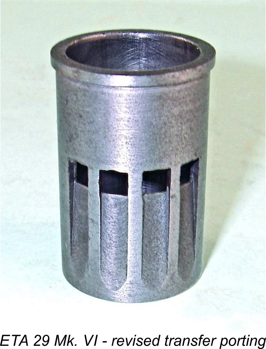 All models of the ETA 29 were to adhere to this basic formula throughout. The shape, placement, aperture numbers and style of the porting in the liner varied over the engine's lifetime, as did the conrod, piston baffle, disc valve and certain details of the crankcase casting around the top fin area and bypass flare. However, the basic functional design remained more or less unaltered throughout. In fact, the external appearance of the engine changed surprisingly little over the nineteen years during which it was in production.