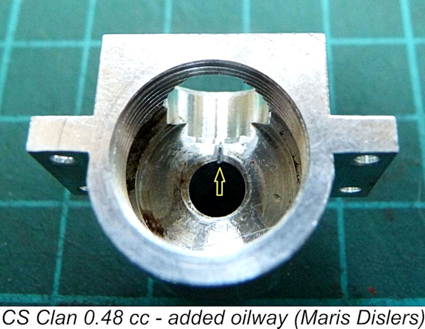 One very knowledgeable owner of the 0.24 cc version of the CS Clan was the late and much missed David Owen of Woolongong, Australia. He reported having run his example and experiencing similar problems. In his case, the piston/cylinder fit was not exceptional and the engine lost power as it warmed up. In addition to this, the venturi/tank assembly left some room for improvement. David sleeved the venturi bore slightly, but the result was still not satisfactory, although there was an improvement.