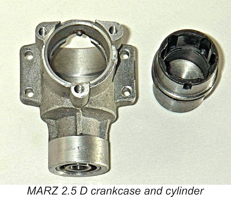 In the late 1960’s, a group of Moscow-based Russian competition experts known collectively as the Central Sports Model Flying Club (ZSKAM - Russian ҴCKAM) was assigned the primary responsibility for the ongoing development of commercial Russian competition engines. In a separate article on this website, I’ve traced the history of the engines which were designed by this group and distributed under the ZSTKAM name. The advent of ZSKAM (later ZSTKAM) signaled a noticeable improvement in the quality of many new series-produced Russian designs, particularly since the manufacture of the more promising models developed by the group was assigned by DOSAAF to a number of military production facilities to which DOSAAF had some level of access. These facilities generally worked to significantly higher manufacturing standards. Although its design pre-dated the central involvement of ZSKAM, the RITM remained in production in its later versions until at least 1975 - I have a New-in-Box example factory-dated from that year. It was seemingly in the late 1970's or soon thereafter, according to some rather sketchy information gleaned by the late US model engine importer Ed Carlson from business contacts behind the Iron Curtain, that the engineering department of the University of Moscow took a hand. The unsubstantiated story runs that they were asked by DOSAAF to investigate the problem of coming up with an improved design for a 2.5 cc competition training diesel suitable for mass production at reasonable cost and that the MARZ 2.5 D was the result. The primary objective was seemingly to develop an updated replacement for the MK-12V model which could be produced by the same Moscow facility. It's unreasonable to expect that we'll ever be able to prove or disprove this story, but it does make a great deal of sense. Although the influence of a number of previous Russian engines and others from elsewhere is quite clear in its design, the MARZ displays a refreshingly original combination of features which reflect a considerable amount of practical thinking in engineering terms. It would have made an excellent design assignment for a group of mechanical engineering students working under expert supervision in accordance with clear terms of reference. Based on first-hand information supplied by Ilya Leydman, it appears that an increasing proportion of Russian model engines during this period were manufactured by arrangement with DOSAAF in normally-restricted military production facilities as an off-peak activity to promote full utilization of equipment and staff. The MARZ 2.5 D was produced in a Moscow plant which was dedicated primarily to the servicing of military helicopters. Indeed, the name "MARZ" was derived from the Russian-language initials of the facility which made the engines - in English, the "Moscow Aero Service Factory". This facility had previously undertaken the manufacture of the MK-12V diesels and the Moscow and Meteor diesel and glow-plug models which preceded the MARZ. Description