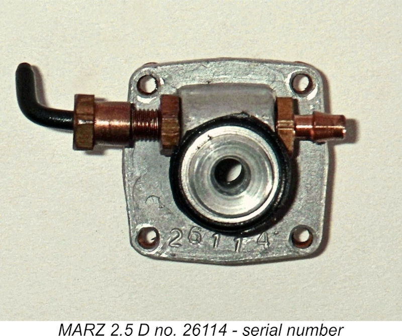 Australian-based clubs and hobby shops quickly bought some 1,000 examples of the MARZ engines, but this didn't go far towards liquidating the 9,000 engines that Macheast still had on hand. Accordingly, the marketing effort soon went worldwide. Ed Carlson and others like him were now able to obtain these engines quite legitimately and straightforwardly from the new Australian source, and the MARZ thus became readily and openly available worldwide, with none of the former cloak-and-dagger arrangements being necessary. Apart from Ed's ongoing imports to the USA, the engines were also imported into America by RJL (MECOA) and Hobby Club, as well as into Britain by Modusa & Co of Kingston-on-Thames in Surrey (Electronic Development's old stomping grounds). Consequently, although actual manufacture had now ceased, the MARZ was in fact just entering its international sales hey-day, with examples finding their way around the world in quite large numbers. They are still frequently encountered today in Australia, Europe, North America and elsewhere, while New-in-Box examples continue to be offered for sale from Russian and Ukrainian souces. The fact that the engines were now readily available on demand naturally brought prices down, and the engines were (and still are) sold for the most part at very reasonable prices. In 1994, Macheast initiated what amounted to a "fire sale" of these and other Russian engines from the Communist era, offering substantial discounts for purchases of ten or more engines. This led to Ed Carlson acquiring substantial stocks of the MARZ engines, among others. In April 2010 Ed informed me that NIB examples of the MARZ remained in good supply from his company (Carlson Engine Imports) and would likely continue to do so for years to come. Ed’s view has been amply confirmed by subsequent events. Following Ed’s passing in 2023, his son Randy took over the business with its remaining inventory. As of 2024 the Carlson Engine Imports website continued to list three of the four versions of the MARZ (see below) as still being available. According to Ilya Leydman, RJL (MECOA) had also acquired a significant inventory of these engines, although these appeared to be gone as of 2024 – certainly, they were not being advertised on the MECOA website. Apart from those available from other sources, new or near-new examples of the MARZ continue to be offered on eBay by sellers located in the former Soviet Union, particularly in Ukraine. It appears that the engine remains in widespread circulation in its homeland. It’s reasonable to suppose that new or as-new examples of the MARZ will remain available at reasonable cost for years to come, along with "bones" examples which can provide spare parts. Serial Numbers I have been unable to discern any readily accessible pattern in the range of serial numbers encountered other than a possible straight sequence. All of the MARZ engines that I've ever see do have such numbers stamped on the rear face of their backplates below the carburettor, but it's difficult to extrapolate any obvious rational basis for them other than a straight sequence.