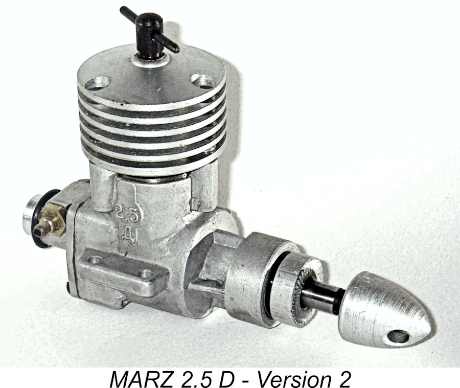 The MARZ was launched upon the Soviet modelling world at some point in the early 1980's and remained in production at some level for 10 years or so. Evidently the intent was that it would replace the long-established MK-12V as the standard "consumer-grade" competition diesel using which aspiring competitors could gain experience and with which Soviet youth could receive technical and aeronautical training. Like a good few other Russian engines, it appears to have been produced (or perhaps more accurately, over-produced) in very large quantities for distribution throughout the Soviet school and model club systems as well as being made available through official channels to aspiring competitors for use in learning the basics of their sport. It was evidently designed specifically for use as a training powerplant.