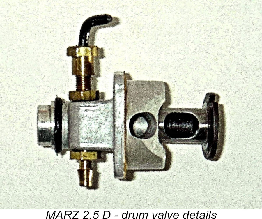 Perhaps a greater benefit would result from some efforts to lighten the relatively heavy big-bore piston. There’s certainly a fair bit of superfluous metal in the interior of that component, the removal of which would reduce reciprocating weight quite substantially. Reduction of reciprocating weight has long been recognized as one of the most effective approaches to performance improvement in high-speed engines. However, be really sure that you know what you’re doing and have the appropriate equipment before tackling such a task. A milling machine is the ideal tool. A final point worth checking is to ensure that there's no air leakage past the ends of the spraybar where it is secured to the carburettor body. Several examples of my acquaintance have exhibited significant leakage at those points, with highly negative effects upon running consistency. Easily fixed with one or two small gaskets. All of the above issues arise simply from the fact that the MARZ was a mass-produced engine that was not manufactured to anything approaching tool-room standards and did not receive a great deal of individual attention at the factory. It's therefore up to the owner to give it that attention. This does not detract in any way from the fact that this is a very well thought-out design which is quite well made where it counts and which performs at what would have been viewed as a quite high level by then-contemporary non-competition standards. Once the engine is properly set up, the two remaining points to consider are intake choke area and fuel. The MARZ was supplied with two alternative intake venturis having throat diameters of 3.0 mm and 3.5 mm respectively. The engine delivers its highest power output with the 3.5 mm intake fitted, but the resulting 9.6 mm2 choke area provides very marginal levels of suction if the engine is used in an aerobatic application. The 3 mm fitting provides a more reasonable choke area of 7.0 mm2, which allows the engine to perform very consistently in such an application. I always used the 3 mm venturi for aerobatic flying - I suspect that it was the preferred standard fitting. Turning now to fuel, the reader may recall that the manufacturers recommended an un-doped fuel containing 33% castor oil for general use. This may seem excessive, but there is actually some sound reasoning behind it. The major down-side of the reverse drum valve induction arrangement is the fact that it has a tendency to starve the conrod big end of both oil and direct incoming cooling mixture flow, causing it to run hot or even fail. It was this issue that led to the progressive abandonment of the reverse drum valve design in leading-edge team race diesels as time went on. I always used at least 25% castor oil in my operational MARZ engines. I also added up to 2% ignition improver, to which the engines responded well.