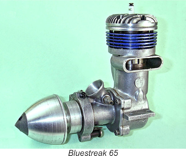 As a result of the liquidation process, the bulk of the remaining Sky Devil parts and tooling ended up as the property of EDCO's major creditors, the Tyce brothers, who owned a company called International Tool Corporation of Chula Vista, California, just to the south of San Diego. The established business of this company was the provision of full-sized aircraft engineering services, but they decided to see if anything could be salvaged from the remains of the EDCO venture. To that end, they hired Ira Hassad to come up with a model engine The result was Ira Hassad's last commercial model engine design - the Bluestreak 65, still featuring FRV induction and using many EDCO Sky Devil parts. However, the "classic" formula had made further inroads, since the new design used a revised crankcase casting which featured a conventional side-stack exhaust in place of the twin-stack front exhaust layout used on all previous Hassad designs. Since the engine possessed all of the other classic racing features such as twin ball-race shaft and ringed alloy piston, it followed the now-established racing engine pattern in all respects apart from its continued adherence to FRV induction. Reflecting its time and place, the Bluestreak was offered in both spark ignition and glow-plug versions. It was reportedly a fine engine for free flight and non-racing control line applications. However, in a racing context it could not hold its own with the then-current crop of big-bore racing engines from other manufacturers. Even so, all 2000 or so examples of this engine which were manufactured did eventually find buyers, although it took a while. Long before that happened, Ira Hassad had moved on into other engineering ventures, leaving model engines behind together with his own legend.