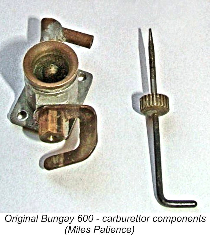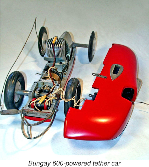 The consequence of the engine's failure to excite the contemporary marketplace is that the Bungay 600 is one of the rarest racing engines of them all today. Originals do exist, but in very small numbers - finding one nowadays is rather akin to finding Long John Silver's original wooden leg, and you'd better have your credit card well warmed up! Miles Patience got really lucky! A nice example of a custom-built tether car powered by an original Bungay 600 was offered on eBay in 2010 for no less than $8,000! I didn't bite ...................