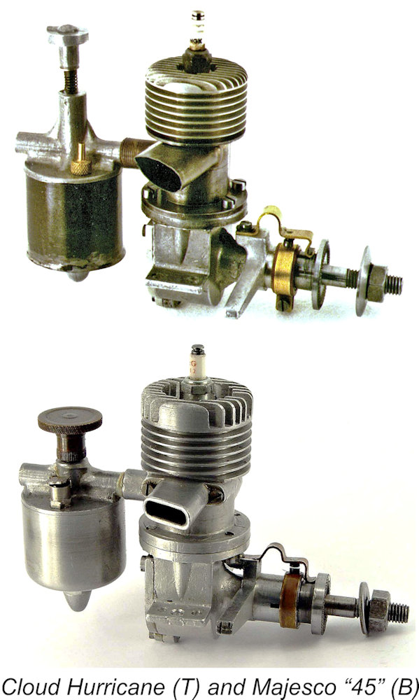 Even allowing for a few seemingly missed settings (probably due to the stiffness of the compression control), the implied output of only some 0.027 BHP @ 6,500 rpm is pretty marginal for anything other than low-key sport free flight applications using lightweight airframes. However, it was for precisely those applications that the engine was arranged. It’s noteworthy that the little Mite turns an 8x4 prop as recommended for free flight at 6,200 rpm, just below its peaking speed. Hence this recommendation appears to be entirely appropriate. So .... certainly not a powerhouse by any means, but a well-made and very user-friendly little engine apart from the unduly stiff compression control. If it has a downside other than its marginal power output, it is that it appears to be somewhat vulnerable to crash damage. The tank is definitely hanging “out there”, and the cylinder installation thread length is pretty marginal. Definitely one to keep out of the ground!! Having said this, there can be no doubt that the Mills simply buries the Majesco in performance terms as well as being a far more practically-arranged design. Once the Mills appeared on the market, it’s my considered opinion that the Majesco would have stood no chance at all. Even the AMCO .87 of July 1947 would have had far greater appeal to the average modeller. The End of the Line