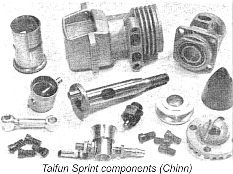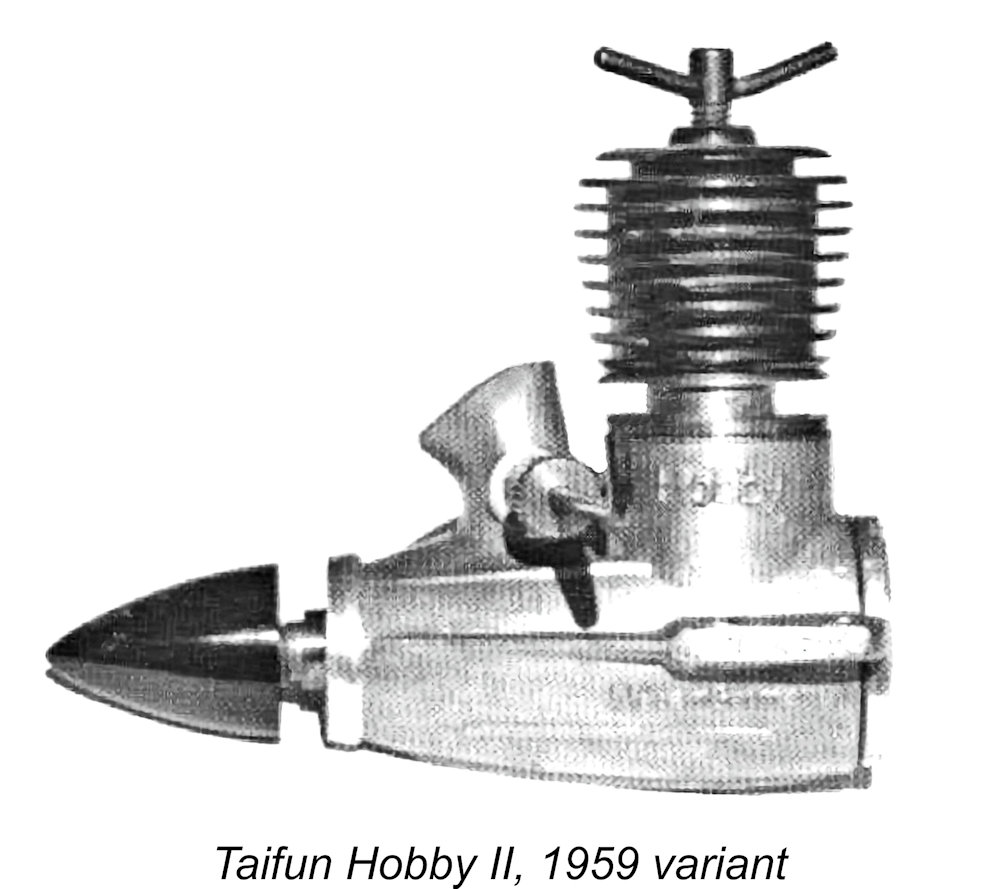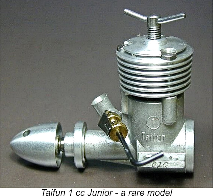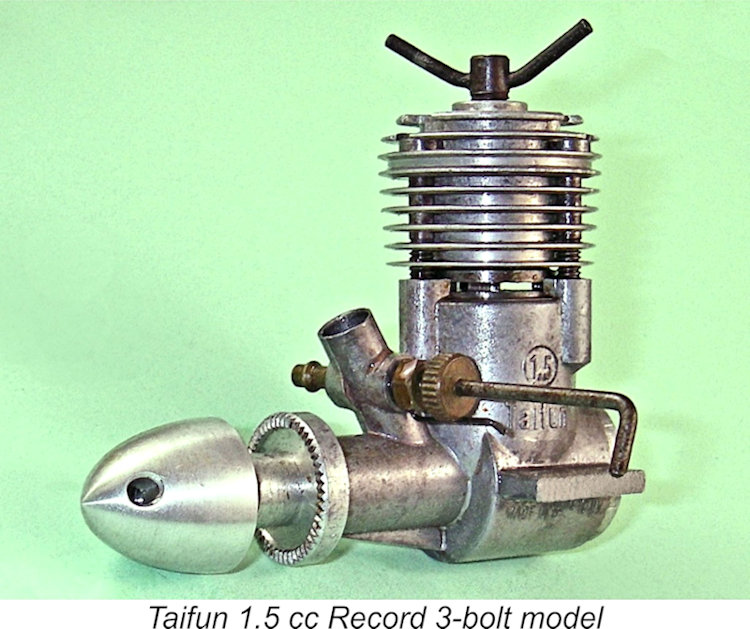 Six distinct models were offered, all of which were given individual names – the 1 cc plain-bearing model was the Taifun “Junior”, the 1.5 cc plain-bearing offering was the Taifun “Record”, the 2.5 cc plain bearing version was the Taifun “Blitz”, the 2.5 cc crankshaft front rotary valve (FRV) ball-race model was the Taifun "Meteor", the 2.5 cc disc rear rotary valve (RRV) ball-race model was the “Meteor Rennmotor Spezial” (Meteor Special Racing Engine), and the 3.5 cc unit was an over-bored and up-stroked "Meteor Rennmotor" marketed as the Taifun "3.5 cc Spezial”. Only the latter two models featured RRV induction, the others being FRV designs.