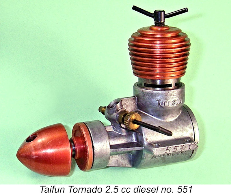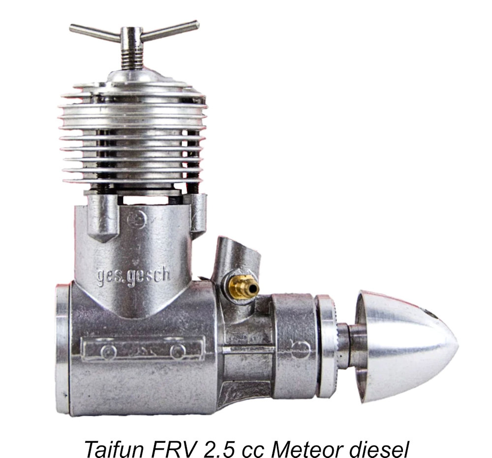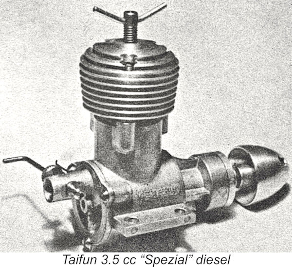 While not delivering a stellar performance by early 1954 standards, the tested engine did give a reasonably good account of itself, being at least on par with a number of British 2.5 cc diesels of the same period. This report undoubtedly served the Graupner cause by creating a positive initial impression of the Taifun range. The report also acknowledged the existence of the 3.5 cc “Spezial” model, which was a bored and stroked version of the disc-valve Meteor "Spezial Rennmotor".
