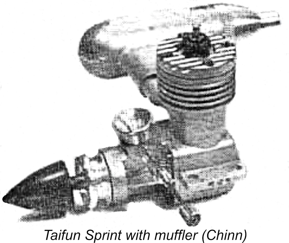 Warring noted that power was “adequate for the job, although rather on the modest side for a modern diesel of this size”. He offset this remark by commenting that with the engine’s modest peaking speed of 12,500 RPM “reasonably large propellers can be used for increased thrust efficiency”. In an R/C context, this is no bad thing. When it came to the operation of the throttle, Warring was rather less complimentary. He commented that despite the thought which had evidently gone into the design of the throttle, “multi-speed performance is strictly limited”. Even with the greatest care in establishing settings, the minimum safe “idling” speed was found to be in the order In terms of ultimate performance, Warring reported an uninspiring peak output of 0.21 BHP @ 12,500 RPM. It’s highly unlikely that this report did much to attract favorable attention to the Zyklon as an R/C powerplant. Despite this, the Zyklon evidently remained in production for some time, becoming the subject of another published test, this time by Peter Chinn, who had now taken over from Ron Warring as the resident engine tester for “Aeromodeller”. Chinn’s report on the Zyklon appeared in the magazine’s August 1965 issue. The main factor which triggered this re-test was the emergence of strict noise control requirements on the part of the Society of Model Aeronautical Engineers (S.M.A.E.), the governing body for British aeromodelling. This led many model engine manufacturers who marketed their products in Britain to develop silencers (aka mufflers) for their engines. Taifun was one of these manufacturers, developing a silencer for the Zyklon. It was primarily to test the effectiveness of this accessory that Chinn conducted his 1965 test. Chinn reprised the description of the engine provided earlier by Warring. He found the engine to be easy to start, with finger-choking alone being the only necessary preliminary. He tried the engine both with and without the silencer, finding that it had very little adverse effect upon performance in the speed range which appeared most appropriate for the engine. His one negative comment was the familiar Taifun complaint that the contra-piston in his In terms of the Zyklon’s throttle response, Chinn had more or less the same experience as Warring before him. He was able to throttle down to 3,500 RPM from a speed of 10,000 RPM, but agreed with Warring that the throttle was best regarded as a two-speed device, with rather indifferent intermediate control. Chinn more or less confirmed Warring’s findings in outright performance terms, finding a peak output of 0.22 BHP @ 11,500 RPM. These figures were obtained with the silencer fitted, whereas Warring had tested the engine in un-muffled form. Despite his various criticisms, Chinn’s summary was generally favourable. He characterized the Zyklon as offering “robust construction, easy handling, a useful power output and adequate throttle control”. He felt that it would be a sound choice for a single-channel operator who needed a reliable two-speed R/C sport engine.