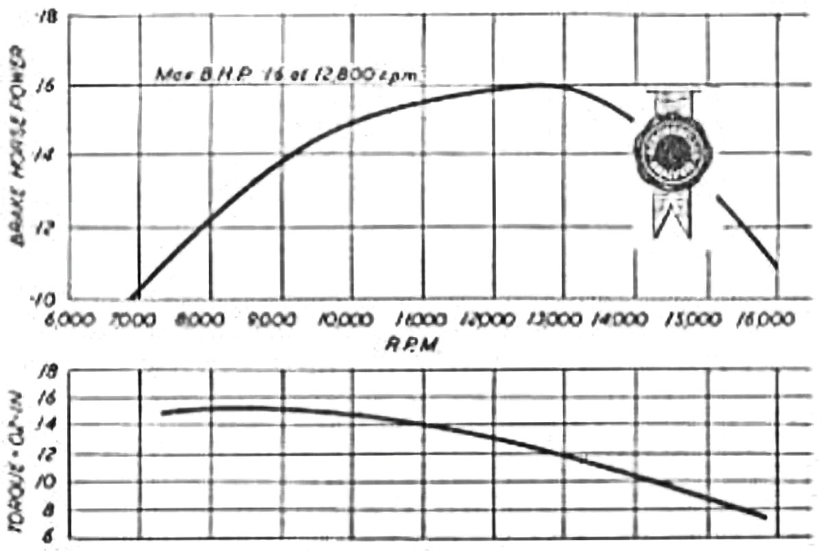 In terms of the engine’s handling, Warring commented that starting was “not all that brilliant”, although he did not qualify this frustratingly general statement. He admitted to using an electric starter for most of his testing "to ensure positive results". Nor did the engine impress all that much in performance terms - Warring only extracted 0.16 BHP at 12,800 RPM on 22% nitro fuel, well down on most contemporary British 2.5 cc plain-bearing diesels, although at least on par with the best of the British 1.5 cc diesels of comparable weight and bulk. The test report included the general statement that the Mamiya 15 was “loud in exhaust” while being “fair in power output”. Warring found that the engine was “much happier running at speeds of 11,000 RPM and above than at lower speeds”.