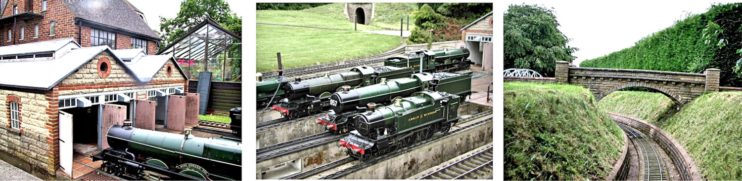 Ted's large garden at Thame soon sported a very extensive 7¼ inch gauge steam railway layout that featured scale-sized bricks for the engine shed, working signals, stone bridges, an accurately detailed turntable and facing-point locks using "scale" nuts and bolts! Ted stayed busy in the machine shop creating beautifully-made equipment to run on this track. My thanks to Keith Wilson for providing the accompanying photos of Ted's garden railway.