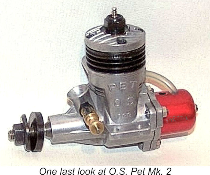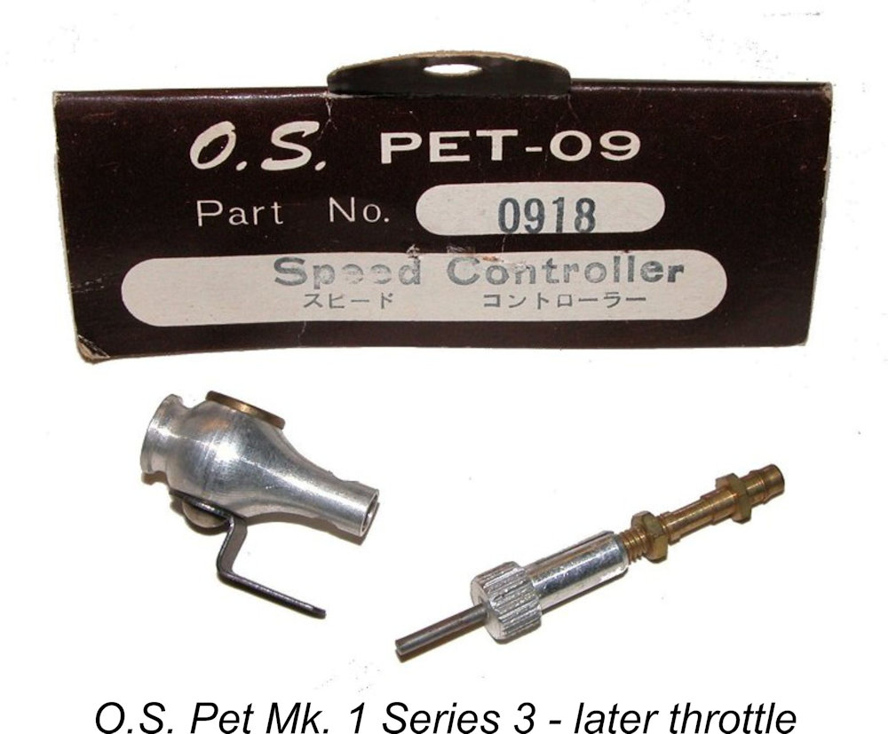 The O.S. Pet 09 was designed all along as a budget entry level model. By contrast, the 1964 Max 10 (not reviewed here) was of equivalent quality and throttling capability to the larger MAX engines in the O.S. range, and significantly more expensive than the Pet.