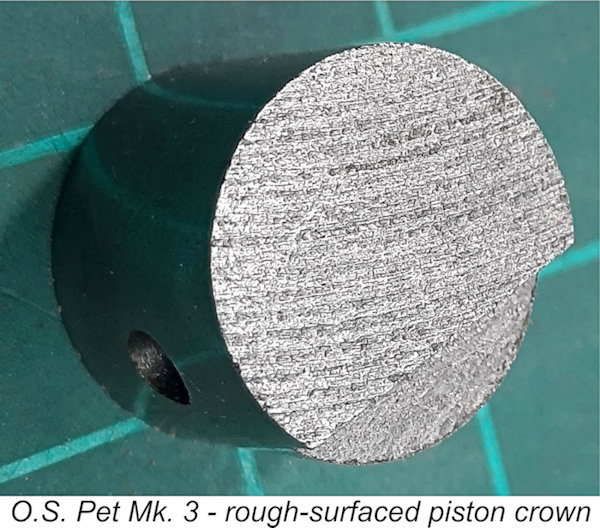 The lowest fin on the cylinder jacket or cylinder was intended to remain just clear of the crankcase top so that the exhaust would neatly discharge into the cast crankcase stack. If the soft asbestos gasket should compress to the point that the lowest fin bottomed out on the crankcase top, further pressure on the gasket At least one batch of Mk. 3 pistons has been observed to have very rough piston crowns, creating upstanding burrs at the edges. After grinding the skirt diameter, these burrs could break away in the form of small metal particles when the engine was run, severely scoring the piston skirt or the bore. De-burring these edges as a matter of course was presumably deemed uneconomic. Some users have reported trouble with the prop driver slipping on the steeply-angled self-releasing taper on the crankshaft nose, or the propeller slipping on the smooth un-knurled prop driver face. These problems were perhaps encountered primarily with more compressible wooden propellers. Both issues were addressed in the Mk. 3 with the provision of a knurled aluminium prop driver engaging with a flat on the crankshaft.