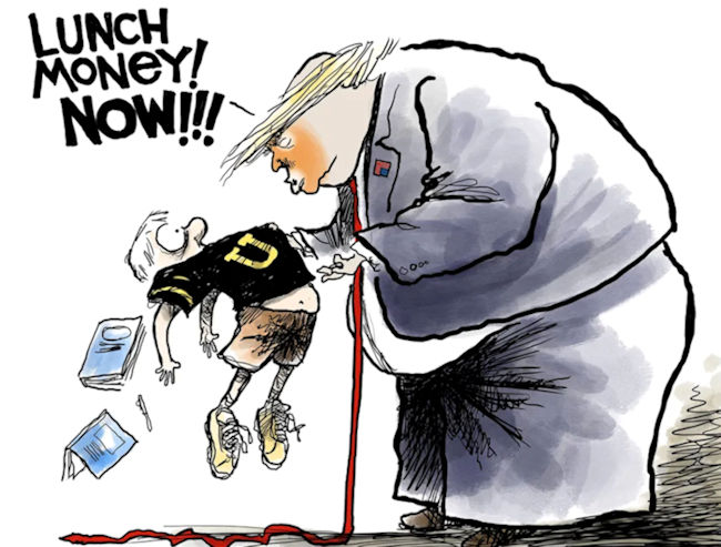 direct challenge to democracy, freedom of religion and freedom of thought in the USA. Taken in concert with his earlier threats to use unprovoked military force against Canada, Denmark and various South American countries (to say nothing of the citizens of his own country), it’s clear that his knee-jerk reaction to any and all issues that bother him, whether domestic or international, is to resort to bully-boy threats, intimidation and violence rather than give any rational thought to potential solutions – that would be too challenging intellectually for his under-developed ten-year-old mind. Like all schoolyard bullies, he’s both cowardly and insecure. Factor in ignorance, vindictiveness and ego-mania, and there you have AO…………..