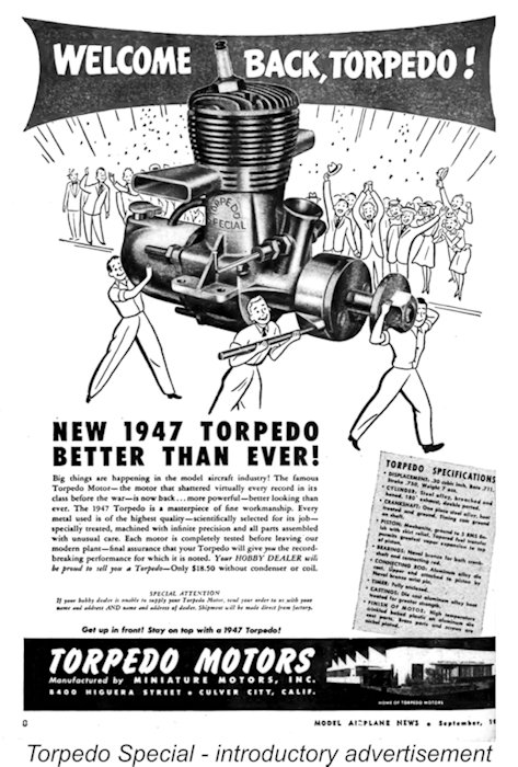 I'm fortunate enough to have very nice examples of both spark ignition and glow-plug ignition models of the Torpedo Special on hand. This being the case, I felt that it would be right to test them in the order in which they appeared to challenge the market.