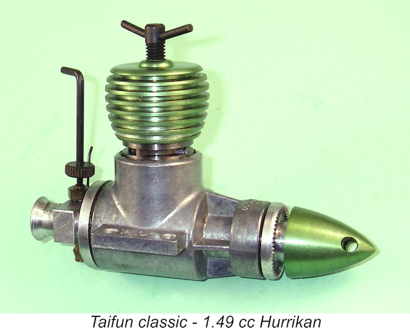 The models just described had replaced the original Taifun Junior, Blitz and Meteor respectively. However, the 1.5 cc displacement category had been unrepresented in the Taifun range since the withdrawal of the 1.5 cc three-bolt Record in 1954. This changed with a vengeance in mid-1956 with the appearance of a completely revised 1.5 cc diesel – the famous Taifun Hurrikan.