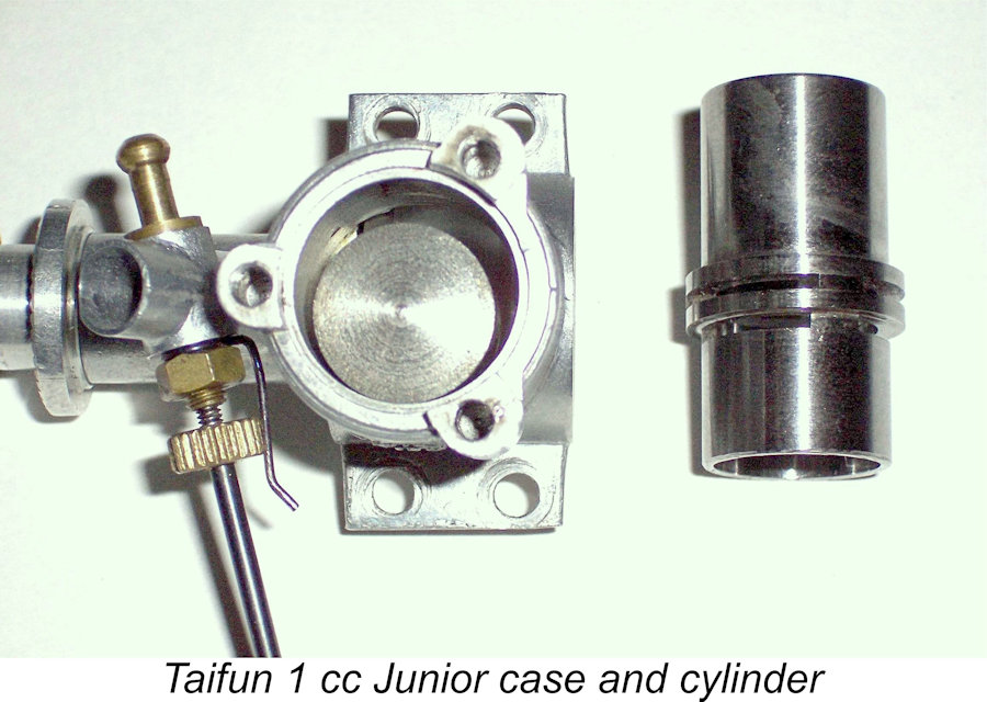 This impression is borne out by the results of a test which I ran back in 2007 on my own illustrated example of the original Taifun Tornado – engine no. 551. This engine was little used, but was assembled with a nice smooth piston fit and a contra-piston which was fully adjustable at all times. My notes confirm that it started very easily and ran flawlessly, being perfectly straightforward to adjust either hot or cold. The observed prop/RPM figures suggested a peak output of around 0.265 BHP @ 12,800 RPM – far more like what one would expect from an engine of this specification, with perhaps more to come following a little additional running time.