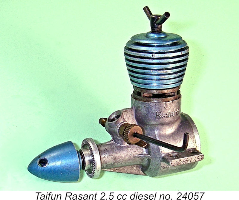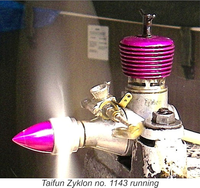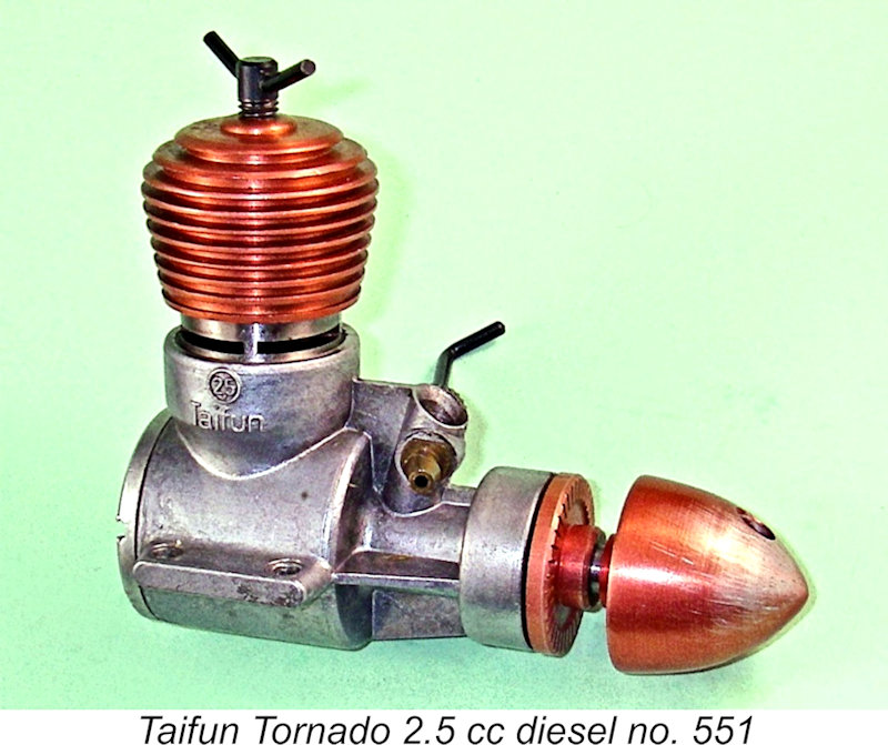 While not delivering a stellar performance by early 1954 standards, the tested engine did give a reasonably good account of itself, being at least on par with a number of British 2.5 cc diesels of the same period. This report undoubtedly served the Graupner cause by creating a positive initial impression of the Taifun range. The report also acknowledged the existence of the 3.5 cc “Spezial” model, which was a bored and stroked version of the disc-valve Meteor "Spezial Rennmotor".