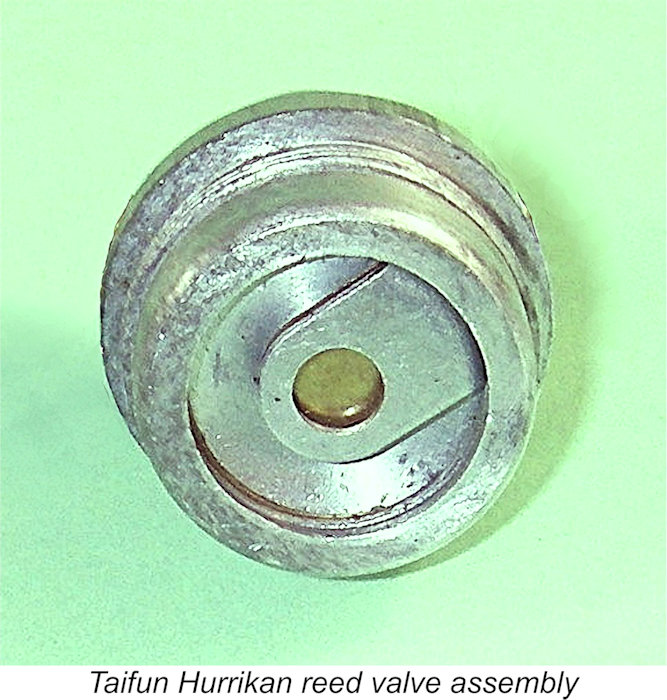 The reed valve used by Hörnlein in the Hurrikan bore a strong resemblance to that used earlier by Aerol Engineering. Interestingly, two reeds were used in each engine, having thicknesses of 0.003 in. and 0.005 in. respectively. These reeds were stamped from hard brass rather than the more usual copper-beryllium.