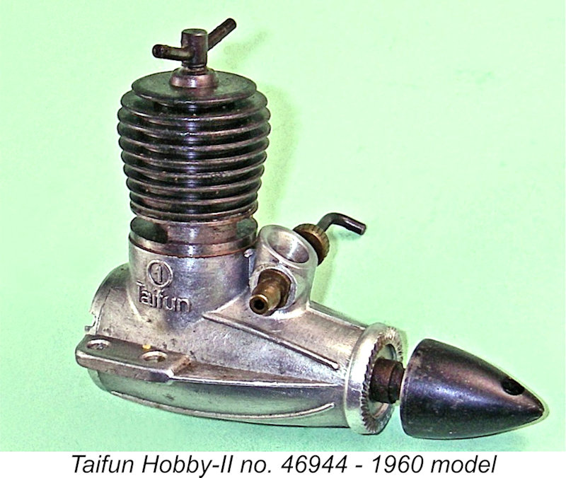 As far as I’m aware, neither the Rasant-II nor the Hobby-II were ever the subject of published tests in the English-language modelling media. Although I’ve never tested a Hobby-II, I would expect it to show a measurable performance improvement over the original Hobby, particularly in terms of torque development. Some years ago I tried a series of test props on my example of the Rasant-II, engine no. 8706. Although The “tea-pot” version of the Hobby-II didn’t last long, production being confined to the year 1959. By 1960 the crankcase die had been changed to eliminate the “tea-pot” intake in favour of a conventional circular intake. Otherwise, the engine continued unchanged. I have no knowledge of whether or not a similar modification was implemented for the Rasant-II. However, I admit that for me at least the "tea-pot" intake had a certain charm............... 1960 – Taifun Enters a New Era – Almost! In 1960, a decision was taken that Hörnlein’s company would become engaged in a new field of model engine manufacture, namely that of glow-plug engine production. Graupner had apparently become convinced that the future lay with glow-plug engines, but there doesn’t appear to have been much in the way of firm direction regarding the form that the initial Taifun glow motors should take.