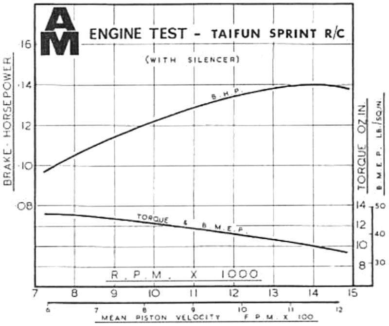This test was published in the April 1954 issue of “Model Aircraft”. Although unattributed, the report was almost certainly authored by Peter Chinn. The tone of the test report was almost uniformly positive. The engine was said to be “nicely made”, with the quality of the main die-casting drawing particular notice as being “outstandingly good”. The manufacturers were commended for supplying a beechwood test mounting block, a tommy bar for the spinner nut and a length of suitable fuel tubing. Apparently all Taifun motors were supplied with this equipment. In performance terms, starting both hot and cold was said to be “easy”, with no requirement for a preliminary exhaust prime. The engine was found to run without excessive vibration, also being “reasonably smooth running” and exhibiting no tendency to sag when hot.