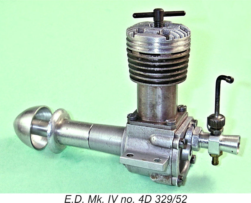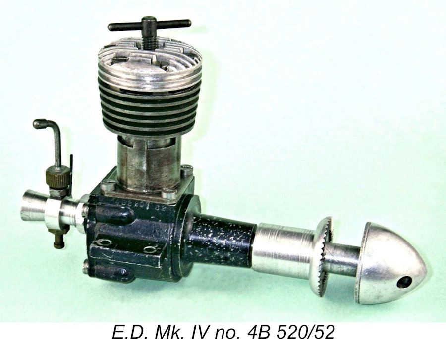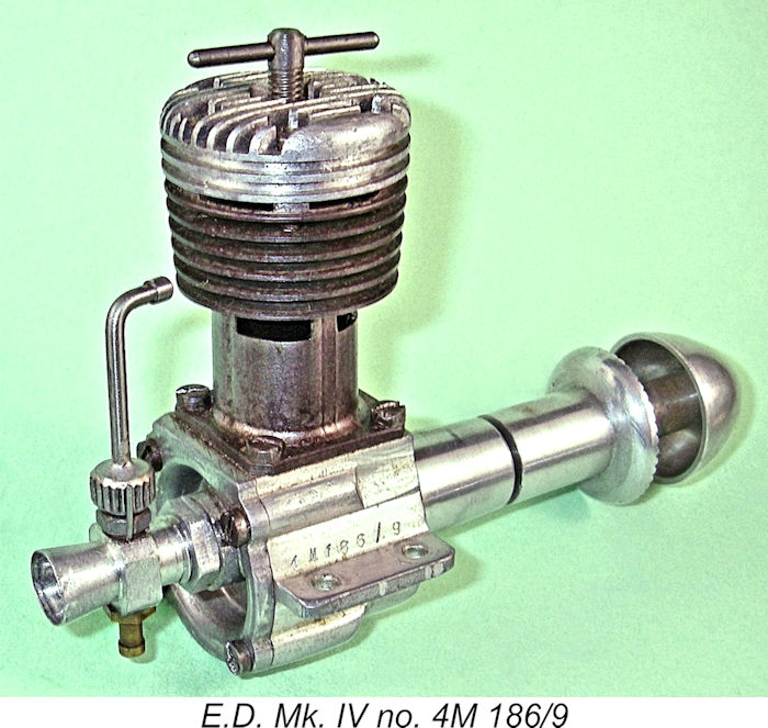 By comparison with some of the other E.D. models, the E.D. Mk. IV seems to have maintained a somewhat lower profile in the eyes of the latter-day aeromodelling and engine collector communities. That doesn’t alter the fact that it was a very capably-designed engine which handled and ran extremely well and which developed ample power for the purposes of most of its owners, also offering a long working life. These qualities plus a few well-publicized successes ensured its popularity among practical aeromodellers of its day.