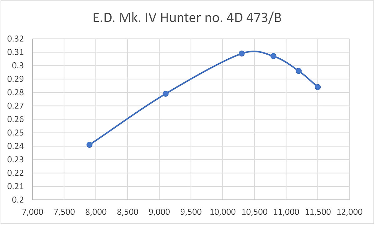 It seemed to me that the effect of these changes upon performance was well worth documenting. Since no test of the shortened-cylinder variants of the Hunter ever appeared in print, it was down to me to document this issue. Having fine complete and original examples of both the first and last variants of the E.D. 346 on hand, I was in a perfect position to undertake the required comparative testing.