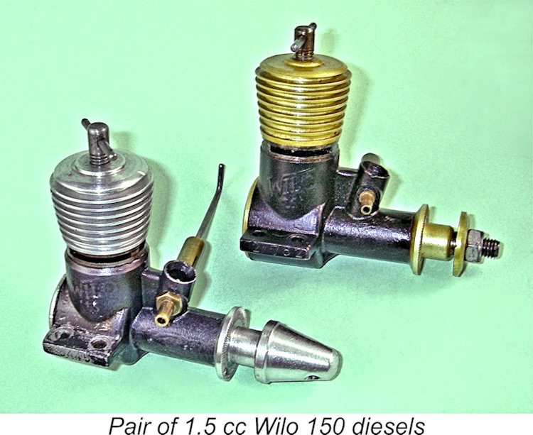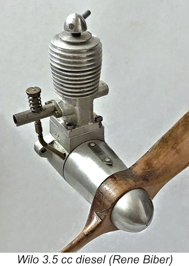 decided to contract out the commercial manufacture of his designs to a separate company. Such an arrangement was duly initiated, with the initial products being the Wilo 3.5 cc diesel illustrated above at the left and a smaller 1.6 cc Wilo diesel built to an identical design.