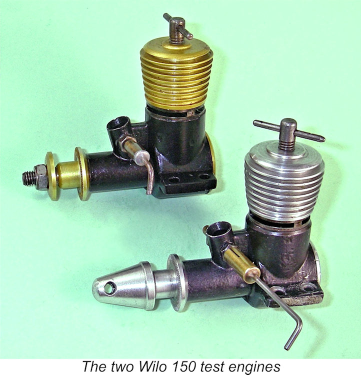Anyway, this story has a happy ending! Once brought to life, the gold-headed Wilo 150 did itself proud, starting easily and running extremely well. Just like its predecessor in the test stand, in fact! Since it showed itself to be considerably stiffer than its companion tested earlier, I put some 20 minutes on it on the APC 8x6 prop in 4 minute runs, leaning out briefly right at the end and then allowing complete cooling prior to the re-start - those full-range heat cycles are critical! After this treatment, it still seemed to be a bit on the tight side, but nonetheless turned all of the same test props within 100 RPM of the same figures as its predecessor. If fully run in and used a bit, it would doubtless at least equal its opposite number. Pretty good confirmation of my original results, I'd say! Conclusion It's impossible to draw any legitimate overall conclusions about the Wilo range on the basis of direct experience with just two examples of one of their products. All that I can say is that if they were all as good as the two tested examples of the Wilo 150, the Wilo engines would have amply met the requirements of sport-flying power modellers in their zone of origin. There's little doubt that they played an important role in keeping power modelling alive in East Germany during the period when the Iron Curtain was at its most impenetrable. Well done, Willi Otto!! ___________________________ Article © Adrian C. Duncan, Coquitlam, British Columbia, Canada First published January 2026