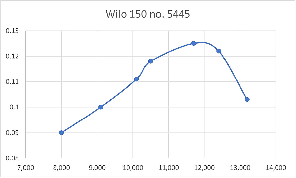 However, information presented on that website suggests that he couldn’t stay away from model engines forever – as most of us know, that bug bites deep! The site includes the accompanying image of a 10 cc R/C glow-plug model bearing the Wilo name – evidently Willi Otto’s final fling in the world of model engine construction. The website cites the date of this engine as 1980. It appears that Willi Otto’s long involvement with model engines had a happy and productive ending! Having now surveyed the Wilo model engine range to the extent possible on the basis of presently-available sources, it’s time to put a couple of Wilo engines on the test bench to see how they actually perform! The Wilo 150 on Test