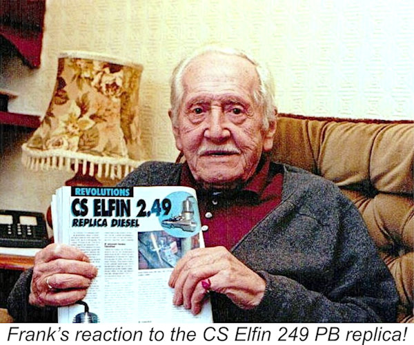 Despite Frank's age at the time, he sounded hale and hearty on the recordings, still retaining many very clear memories of his Elfin years, although he did contradict himself at times, also tending to wander off topic fairly readily! In fact, the discussions were far more in the nature of conversations between friends than true interviews - the thread wandered all over the place and often touched on matters having little or no connection with the Elfin engines. Apart from the occasional contradiction, there are also gaps in the recording due to technical glitches as well as the odd word here and there that was unintelligible on the recording.