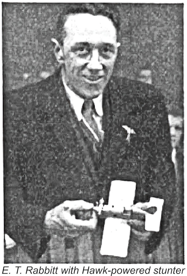 In this endeavour I was in fact preceded by an otherwise-unknown modeller named E. T. Rabbitt, who designed and built a tiny 10 in. span cabin stunter for a Kemp Hawk Mk. 2, which he demonstrated at the April 10