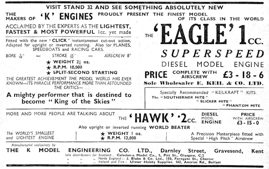 For all the relatively small scale of its operations, the company was quite active in promoting its products, continuing to advertise in the British modelling media throughout this period. The “K” engines also received favorable coverage in widely-read books such as the second edition of Col. Bowden's "