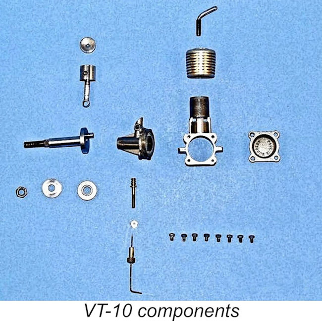The VT-09 was the 1.5 cc member of a series of diesel models produced by the Vella Brothers to a common basic design. It was the only VT model apart from the previously-noted VT-15 whose model designation matched its displacement in cubic inches. Whether or not this was mere coincidence is unknown. All that can be said is that the identification of the other VT models shows no hint of any attempt to match model designations to displacements. One would expect a greater degree of consistency if there was in fact a conscious attempt to match model identifications to displacements.